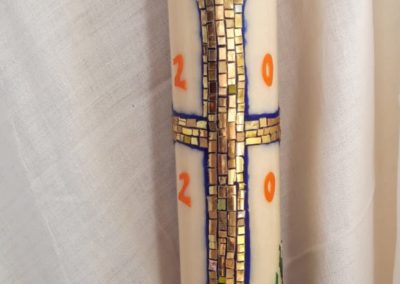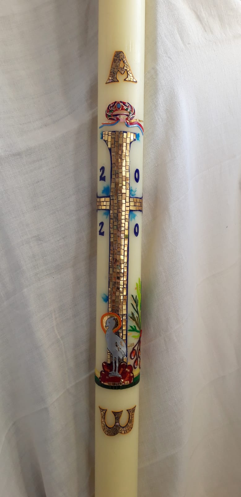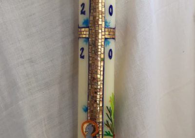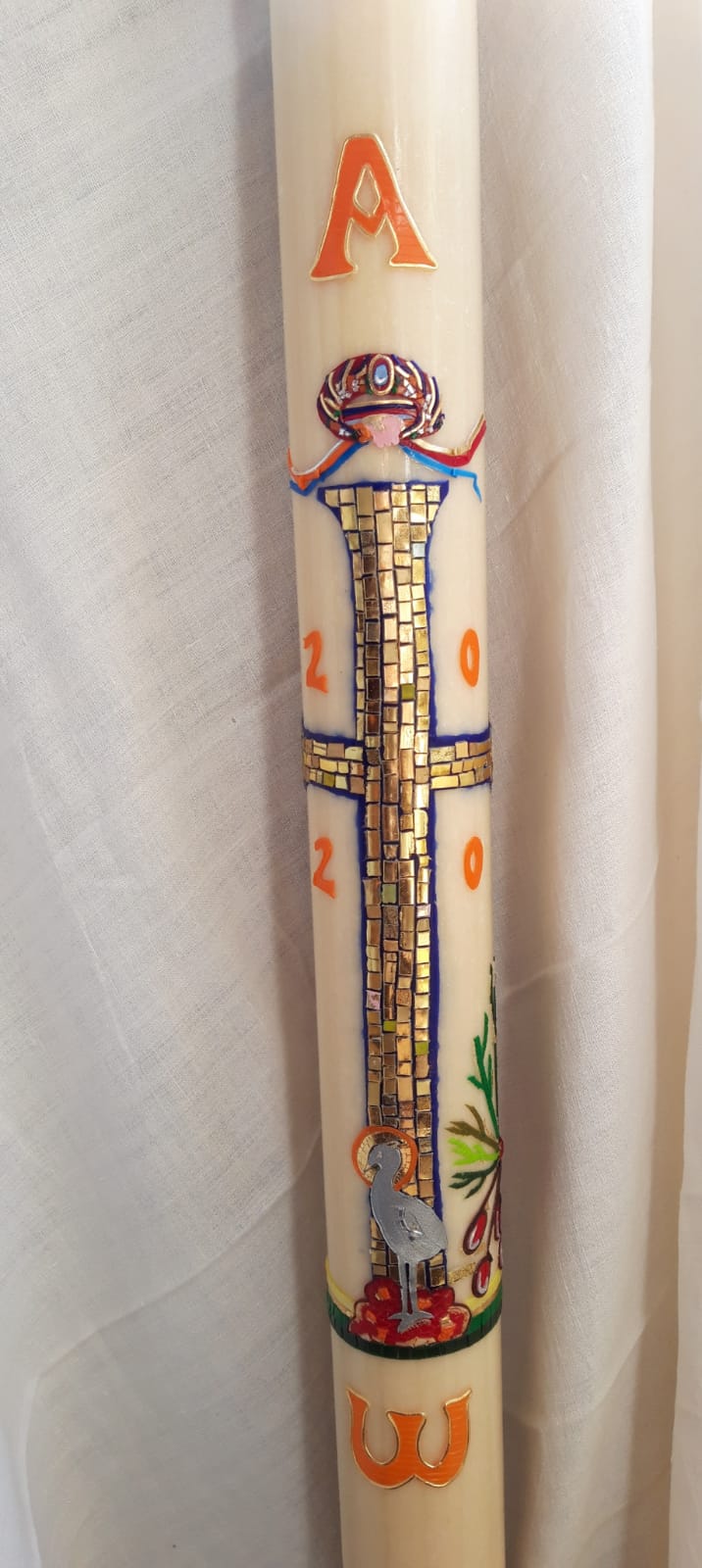 È stata realizzata su fondo blu per richiamare il cielo e per far risaltare ancor più l’oro della croce, una croce gloriosa! Tra le varie decorazioni che sono presenti è stata ripresa e ripresentata la fenice nimbata, con al fianco una palma. La fenice fin dagli inizi della tradizione cristiana