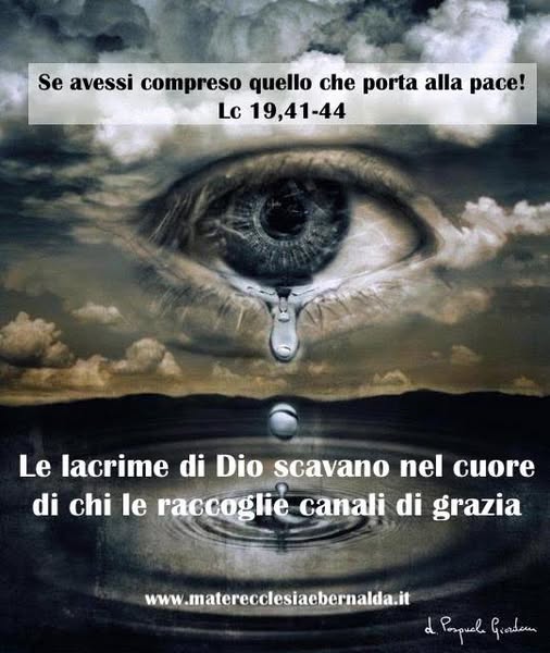 Tuttavia, noialtri cristiani non possiamo fermarci alle semplici lagnanze, non dobbiamo essere profeti di sventure, ma uomini di speranza. Conosciamo il finale della storia, sappiamo che Cristo ha fatto cadere le mura e ha rotto le catene: le lacrime che verte in questo Vangelo prefigurano il sangue con cui ci ha salvati.