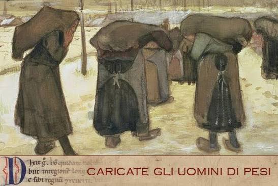 Intervenne uno dei dottori della Legge e gli disse: «Maestro, dicendo questo, tu offendi anche noi». Egli rispose: «Guai anche a voi, dottori della Legge, che caricate gli uomini di pesi insopportabili, e quei pesi voi non li toccate nemmeno con un dito!».