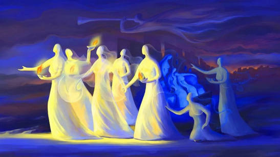 «Il regno dei cieli sarà simile a dieci vergini che presero le loro lampade e uscirono incontro allo sposo. Cinque di esse erano stolte e cinque sagge; le stolte presero le loro lampade, ma non presero con sé l’olio; le sagge invece, insieme alle loro lampade, presero anche l’olio in piccoli vasi. Poiché lo sposo tardava, si assopirono tutte e si addormentarono.